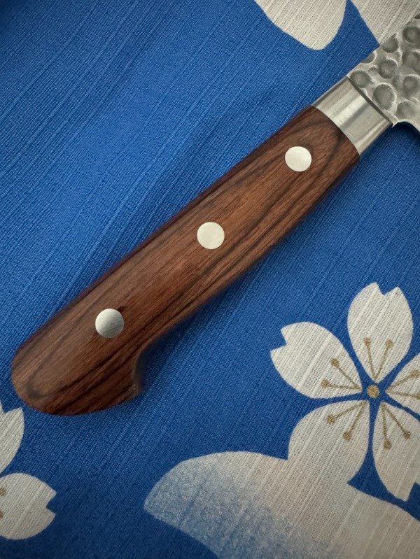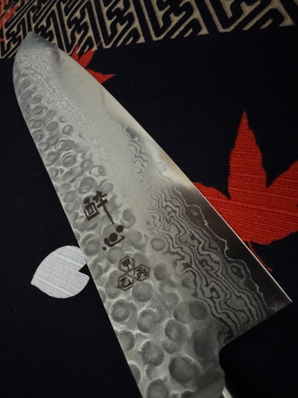 Los cuchillos Suisin Tsuchime Damascus están hechos de 17 capas de acero inoxidable con núcleo V10. Presenta un diseño con textura martillada, único para cada cuchillo. Una línea que gana popularidad por su bello diseño, dureza del acero, retención de filo y resistencia a la corrosión. Sus biseles simétricos lo hacen apropiado para usuarios diestros y zurdos.
